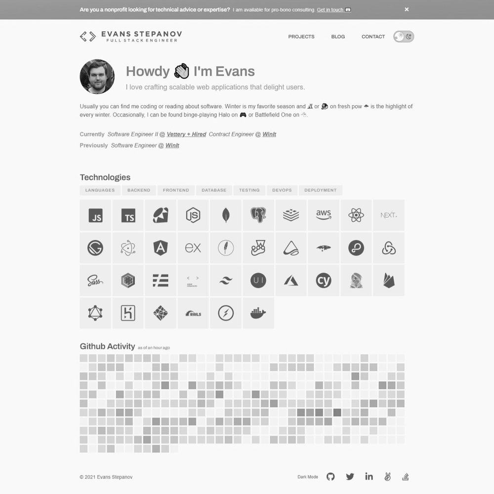 This website! Static site generation is what all the cool kids are talking about today. My previous personal site was a boring old create…